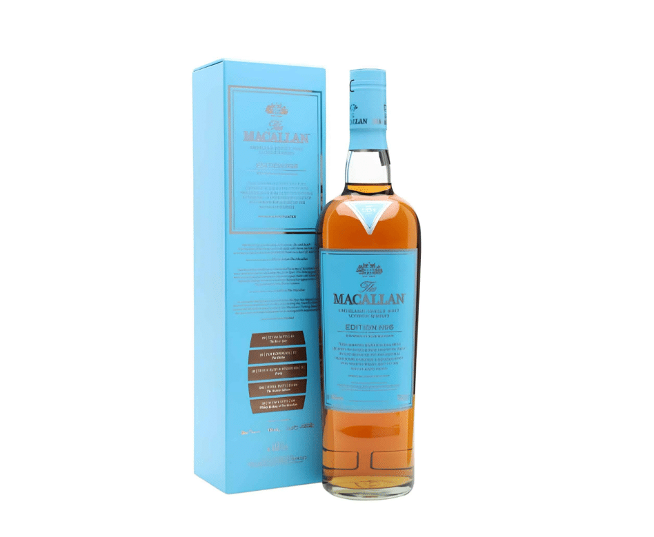 Το Macallan Edition No.6 είναι η έκτη και τελευταία έκδοση της πασίγνωστης σειράς Edition Series, αναδεικνύοντας μια μοναδική γευστική εμπειρία που εμπνέεται από τη φυσική ομορφιά γύρω από το αποστακτήριο Macallan, στις όχθες του ποταμού Spey. Αυτή η ιδιαίτερη έκδοση προσφέρει ένα πολυεπίπεδο αρωματικό προφίλ, που συνδυάζει νότες από φρέσκα φρούτα, ζεστά μπαχαρικά και πλούσια σοκολάτα. Κάθε γουλιά του Edition No.6 αναδεύει την τέχνη της παλαίωσης και της ανάμειξης, αποκαλύπτοντας τον χαρακτήρα και την ιστορία του Macallan. Ιδανικό για συλλέκτες και γνώστες που αναζητούν ξεχωριστά ουίσκι, το Macallan Edition No.6 προσφέρει μια αξέχαστη εμπειρία γευσιγνωσίας.